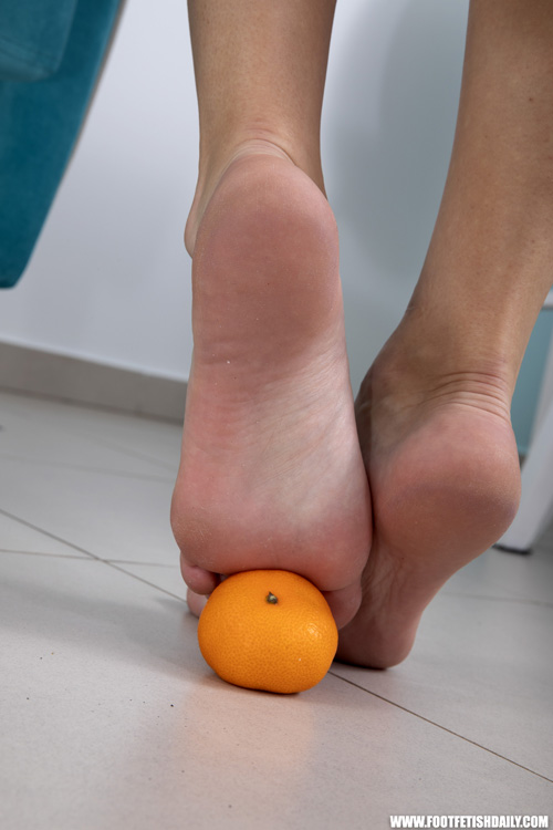 Kim Toy - Kim's shows up in black strappy heels and an unbuttoned shirt. She slowly takes off her shoes to show you close ups to the top and bottoms of her amazing feet. She takes off her cut off jean shorts before she begins to put her toes in her mouth. She takes long licks of her toes making sure to get them top to bottom. She spreads her legs and we see that perfect pussy she has between her legs. Just when you thought you could not take anymore she pulls out an orange to roll around with her feet.