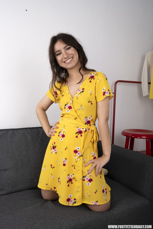 Sunny May - We see Sunny May in the cutest booty shorts as she lays in bed stretching her legs. She is pretty flexible and we see some great angles of her sweet box as she does some toe sucking for us.